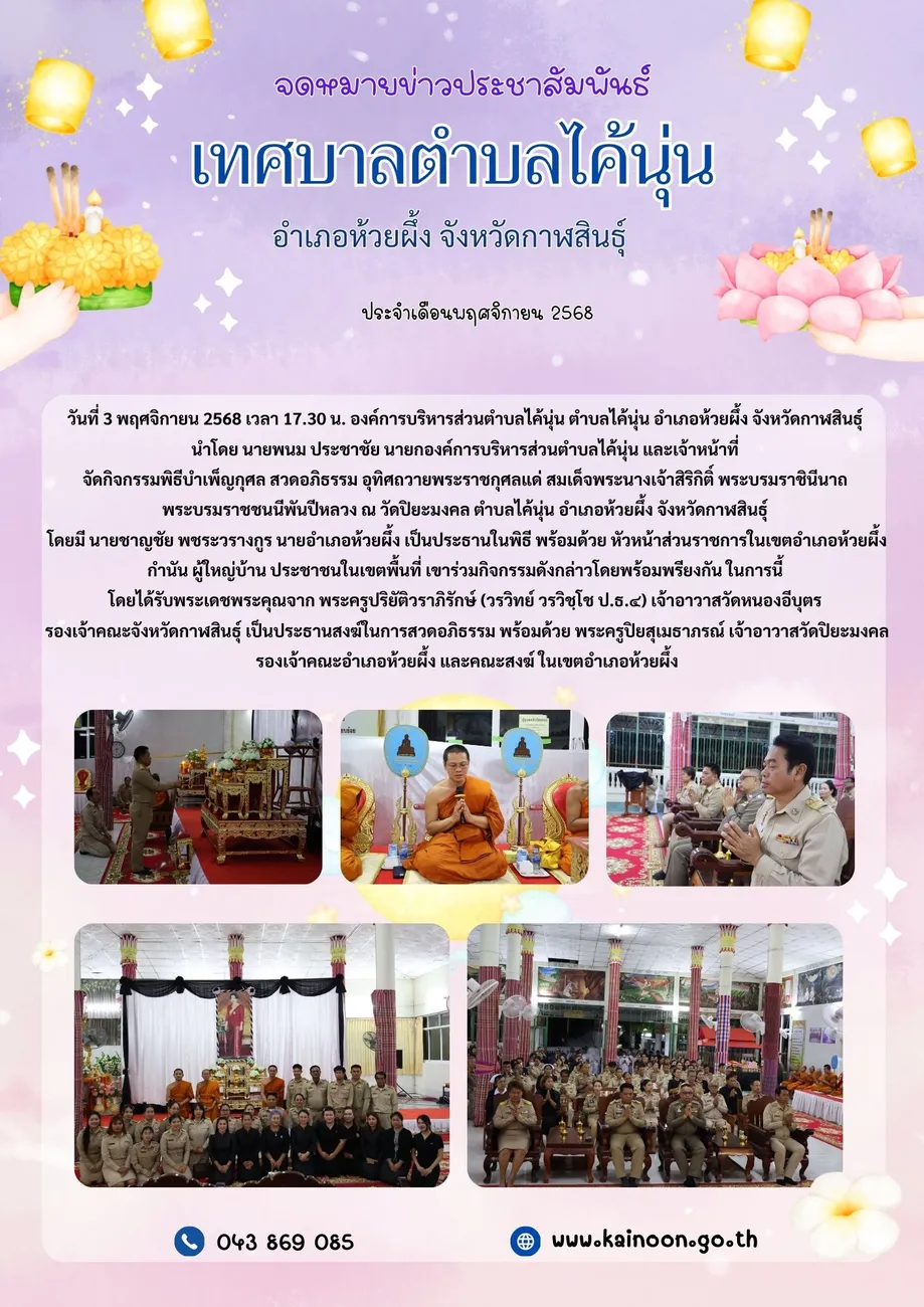 เทศบาลตำบลไค้นุ่น อำเภอห้วยผึ้ง จังหวัดกาฬสินธุ์ ขอความร่วมมือประชาชนเฝ้าระวังภัยมิจฉาชีพออนไลน์